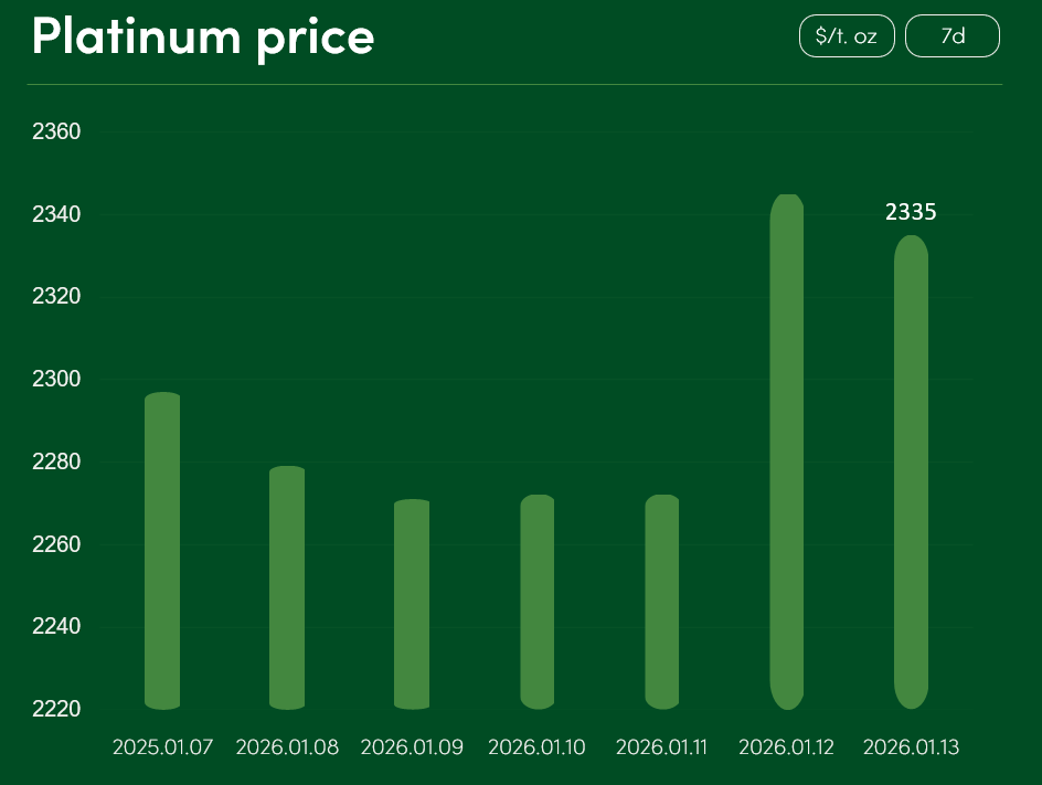 Over the same period, the global platinum price increased by more than 1.5%, reaching USD 2,335 per troy ounce on January 13.