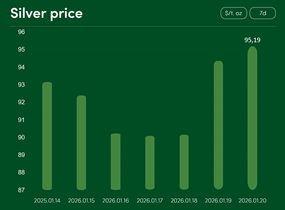 The global silver price also reached a new record between January 14 and January 20 and rose to USD 95.19 per troy ounce.