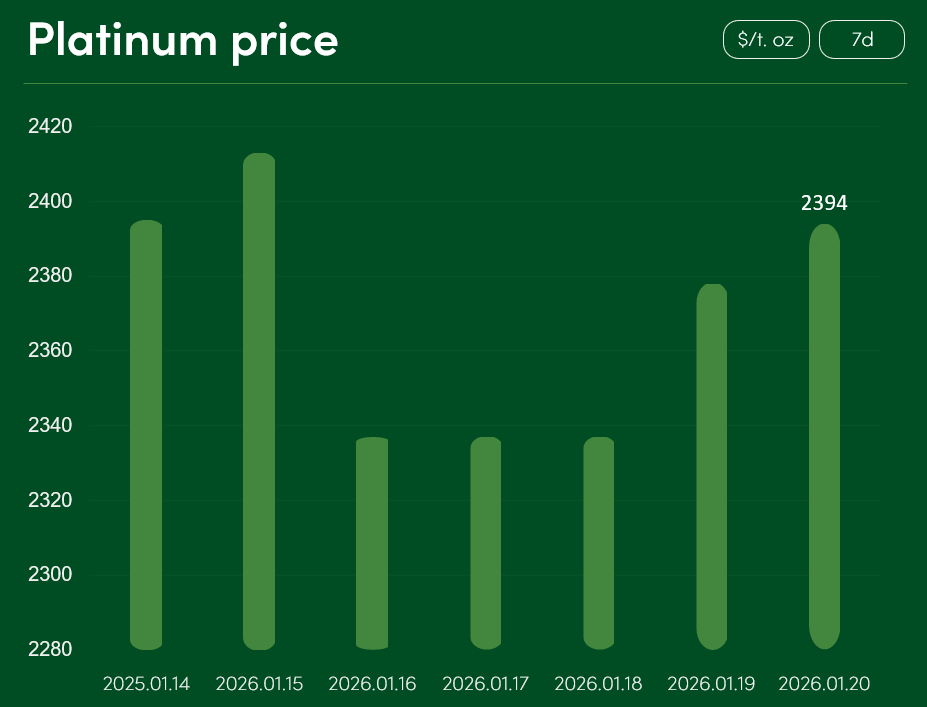 The global platinum price also saw a relatively small change over the same period. On January 20, platinum reached USD 2,394 per troy ounce.