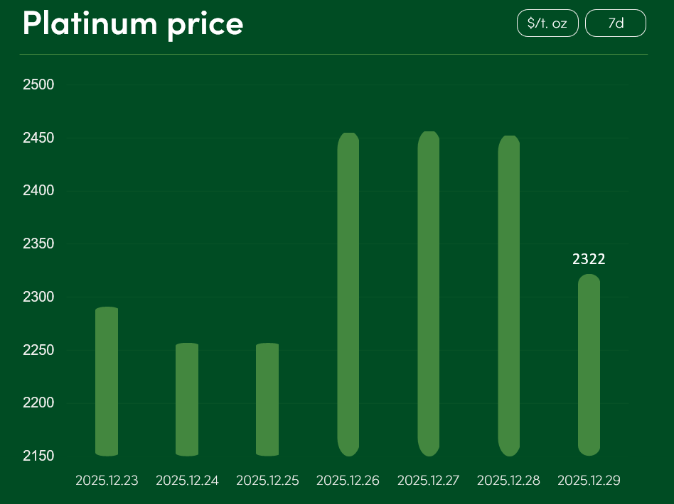 Over the same period, the global platinum price increased by more than 1.3%, reaching 2,322 USD per troy ounce.