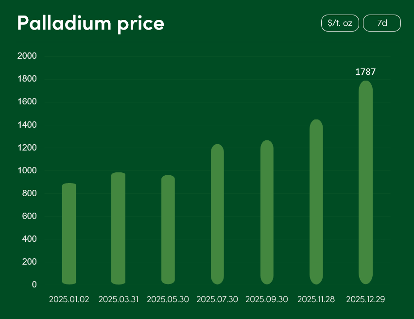 Given that palladium is used very intensively in catalytic converters for internal-combustion vehicles, it also appears that the termination of the US electric-vehicle tax credit programme by the Trump administration and the slowdown in EV sales growth had a positive impact on palladium prices.