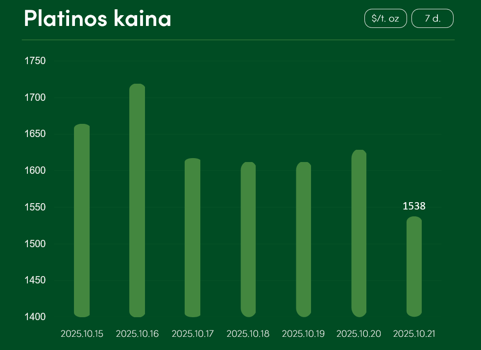 Pasaulinė platinos kaina nuo spalio 15 iki spalio 21 dienos patyrė ~7,5 proc. korekciją ir spalio 21 dieną pasiekė 1538 $/t. oz.