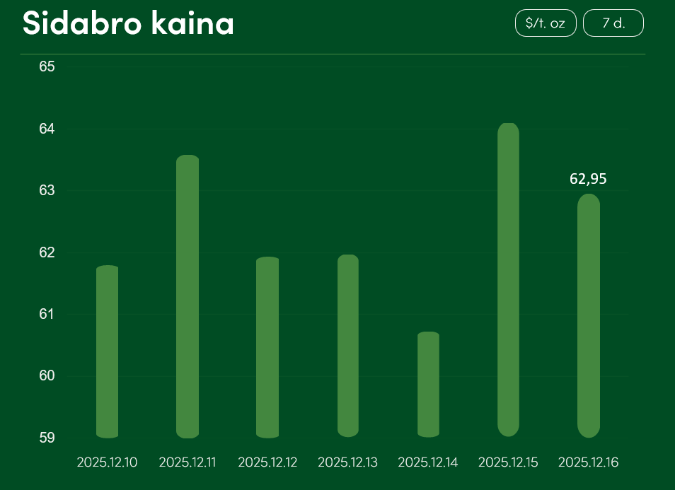 Pasaulinė sidabro kaina nuo gruodžio 10 iki gruodžio 16 dienos fiksavo naujus visų laikų kainų rekordus. Minėtuoju laikotarpiu tauriojo metalo rinkos kaina augo >1,8 proc. ir pasiekė 62,95 $/t. oz.
