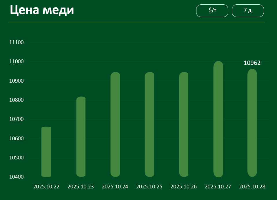 В то же время цена меди в мировом масштабе выросла примерно на 2,6%, достигнув 10962 $/т.